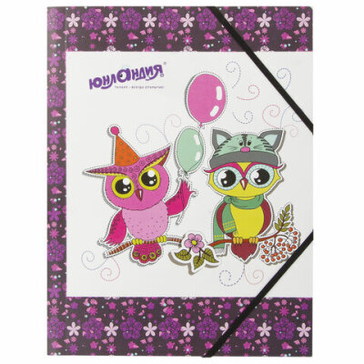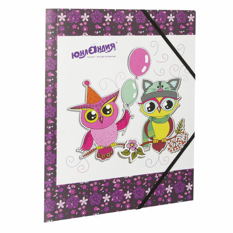 Папка на резинках ЮНЛАНДИЯ "Умные совы", А4, цветная печать, до 300 листов, 500 мкм, 228048