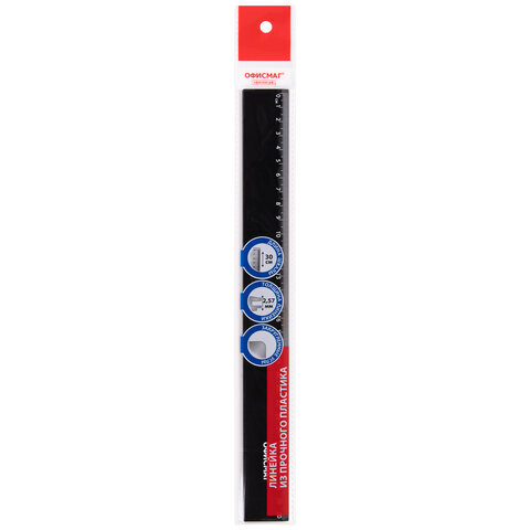 Линейка пластиковая 30 см, ОФИСМАГ, черная, пакет, 210778