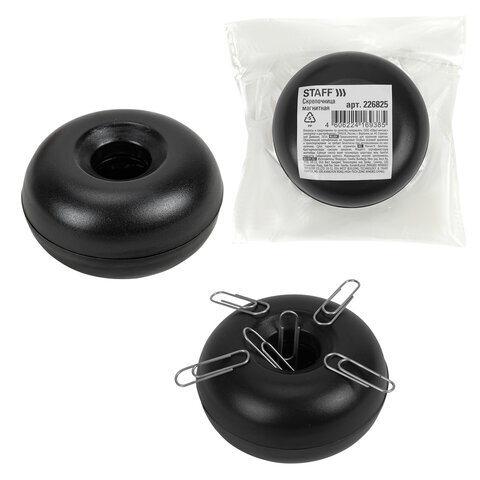 Скрепочница магнитная STAFF, черный корпус, 226825