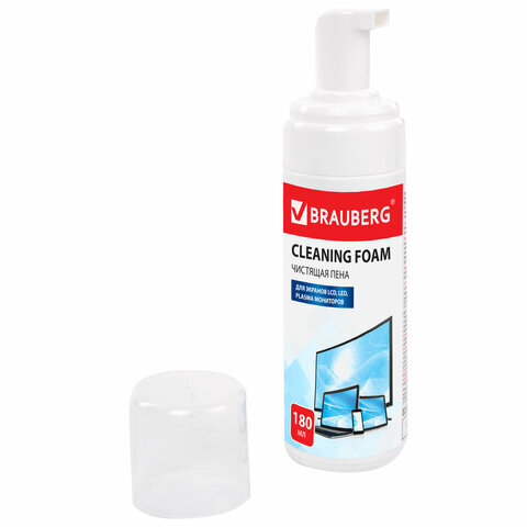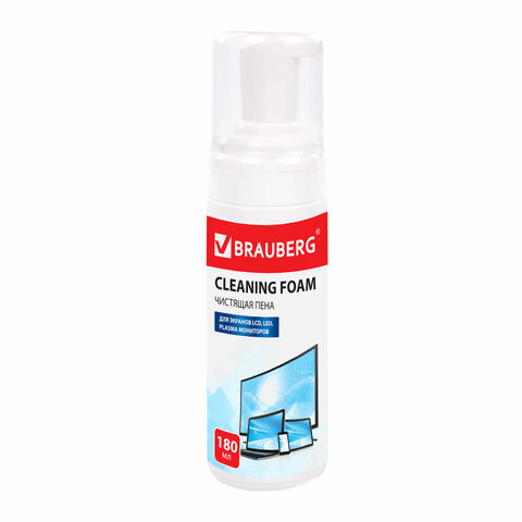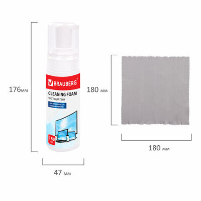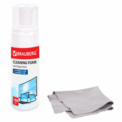 Чистящий набор для экранов всех типов и оптики BRAUBERG, комплект салфетка и пена 180 мл, 511693