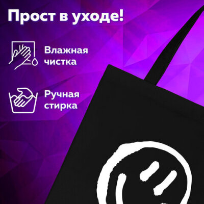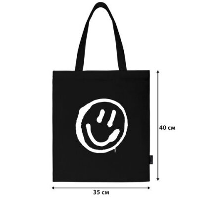 Сумка шоппер BRAUBERG, канвас, 40х35 см, черный, "Smiley", 271900