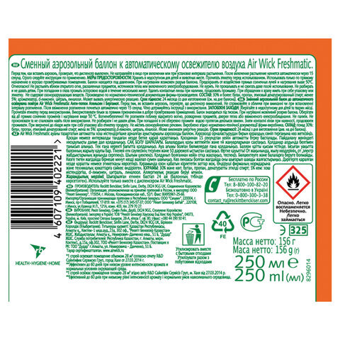 Сменный баллон AIRWICK предназначен для ароматизации воздуха и удаления неприятных запахов в помещениях (офисе, ресторане, туалете, помещении для курения). Содержит натуральные масла и экстракты.