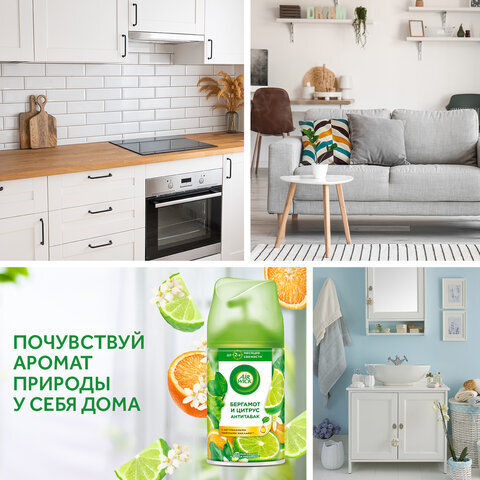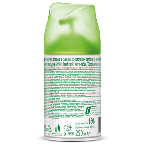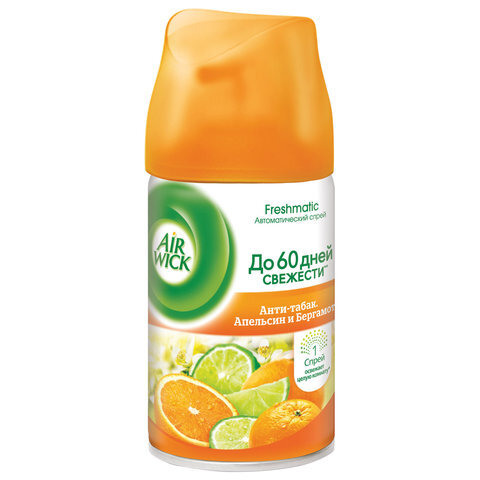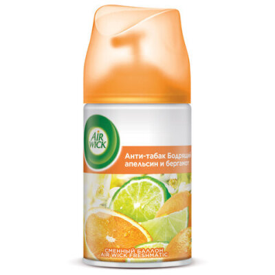 Сменный баллон 250 мл, AIRWICK "Анти-табак. Апельсин/бергамот", для автоматических освежителей, универсальный, 224392