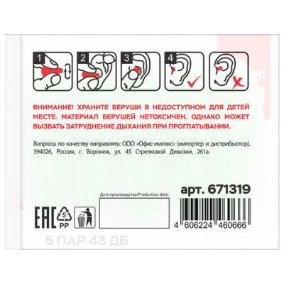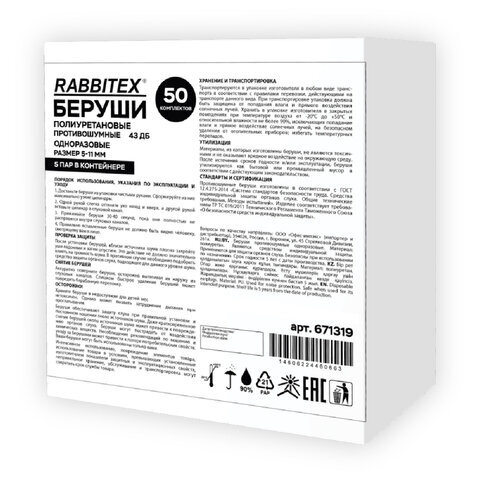 Беруши одноразовые пенополиуретановые без шнурка, КОМПЛЕКТ 5 пар в контейнере, SNR 43 дБ, RABBITEX (РАББИТЕКС), 671319