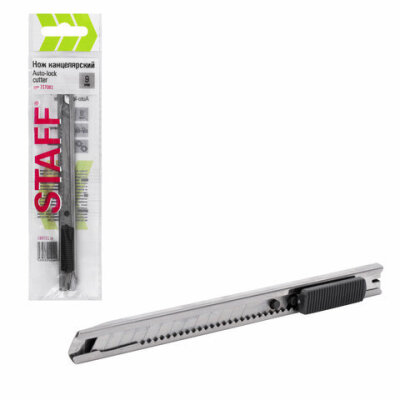 Канцелярский нож STAFF — универсальный, удобный и простой инструмент, который применяется во многих сферах: на складе, в офисе, строительстве, производстве, творчестве и дома. Предназначен для резки различных материалов разной плотности и толщины.