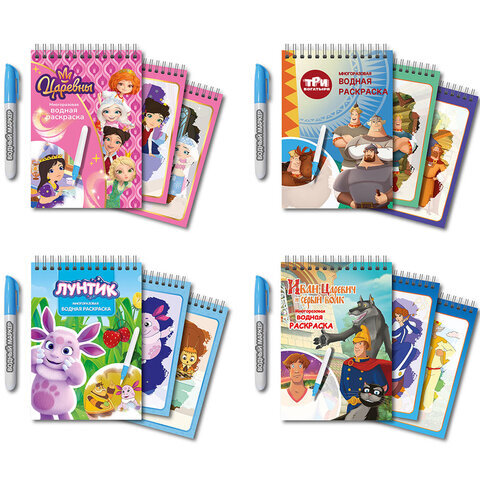 Раскраска многоразовая водная с маркером, лицензия, АССОРТИ, А5, 140х210 мм, 12 стр., гребень, CENTRUM