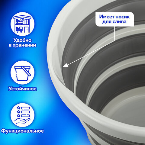 Ведро складное силиконовое 10 литров круглое d=32 см для дома, дачи и авто, LAIMA Home, 608668