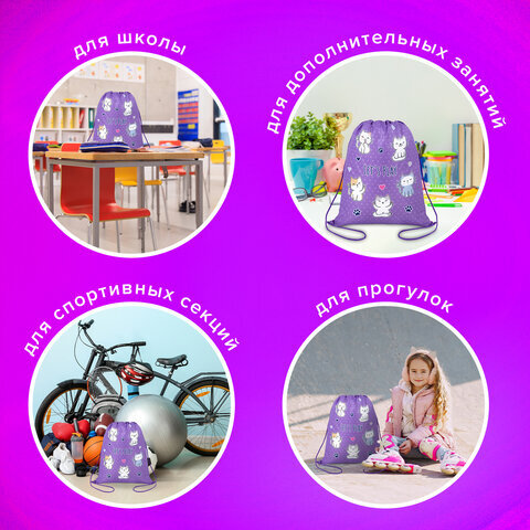 Мешок для обуви BRAUBERG KIDS, с петлей, 42х34 см, "Playing kittens", 272413