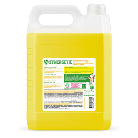Гель для мытья посуды антибактериальный 5 л, SYNERGETIC "Лимон", 103500