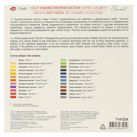 Пастель сухая художественная "Сонет", 24 цвета, круглое сечение, Невская Палитра, 7141224
