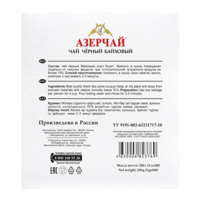 АЗЕРЧАЙ "Букет" – это черный байховый крупнолистовой чай. Восхитительный напиток имеет нежный аромат и приятный терпкий вкус.