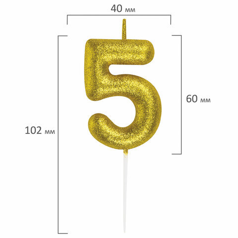 Свеча-цифра для торта "5" золотая с глиттером, 6 см, ЗОЛОТАЯ СКАЗКА, на шпажке, в блистере, 591418
