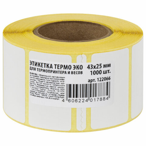 Термоэтикетки ЭКО, 43х25 мм, 1000 этикеток в ролике, 122066