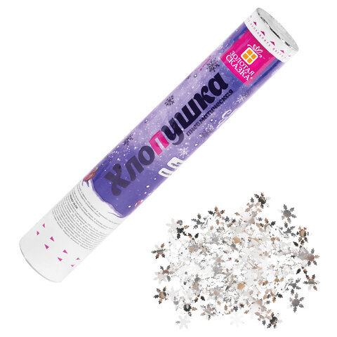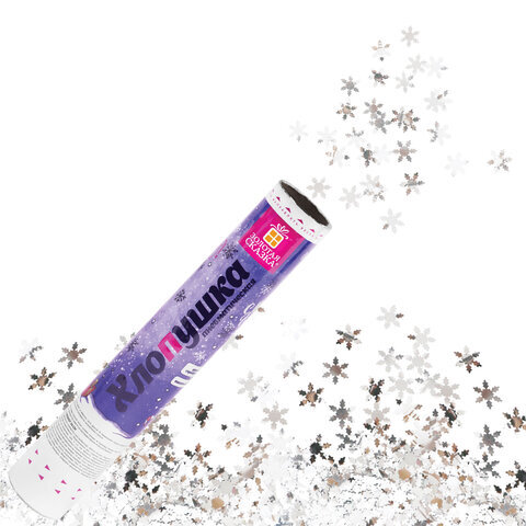 Хлопушка пневматическая 30 см "Снежинки", фольга, серебро, ЗОЛОТАЯ СКАЗКА, 592460
