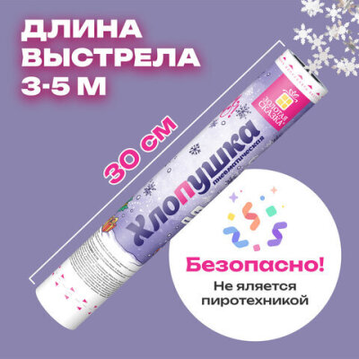 Пневматическая хлопушка не является пиротехникой и работает на основе энергии сжатого воздуха. Конфетти и серпантин ярких цветов можно использовать в помещении или на улице. Хлопушка подойдет для праздников, концертов, реквизита для фотосессии.