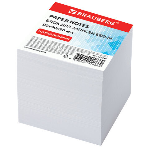 Блок для записей BRAUBERG, непроклеенный, куб 9х9х9 см, белый, белизна 95-98%, 122340