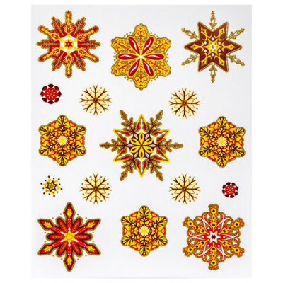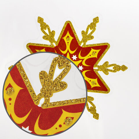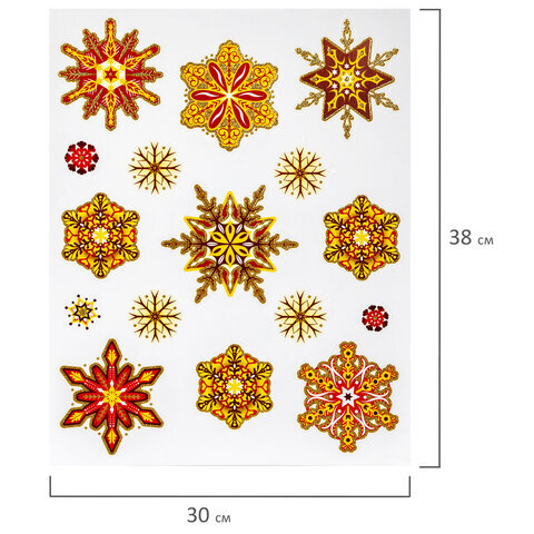 Украшение для окон и стекла ЗОЛОТАЯ СКАЗКА "Красно-золотые снежинки 2", 30х38 см, ПВХ, 591208