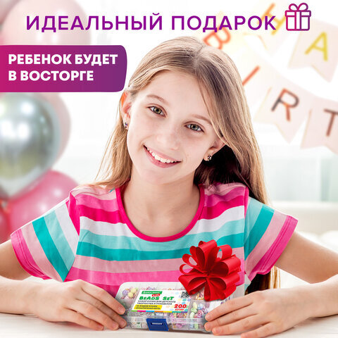 Набор для создания бижутерии и украшений BEADS SET, 200 элементов, 10 видов, пастель, BRAUBERG KIDS, 664693