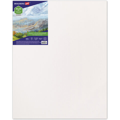 Холст на подрамнике BRAUBERG ART CLASSIC, 40х50 см, 440 г/м2, грунт, 100% хлопок, крупное зерно, 190646