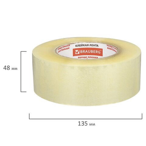 Упаковочная клейкая лента BRAUBERG активно используется в торговле, промышленности, быту и подходит для оперативной упаковки с помощью диспенсера или вручную. Отличается высокой адгезией клея (слипанием с поверхностью) и стойкостью к разрыву.