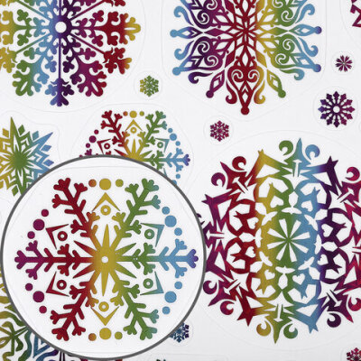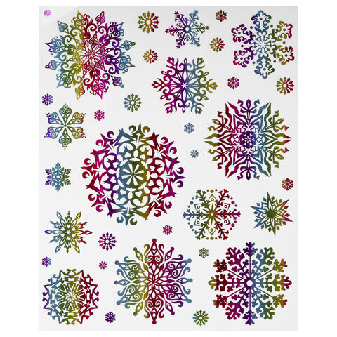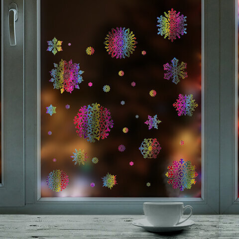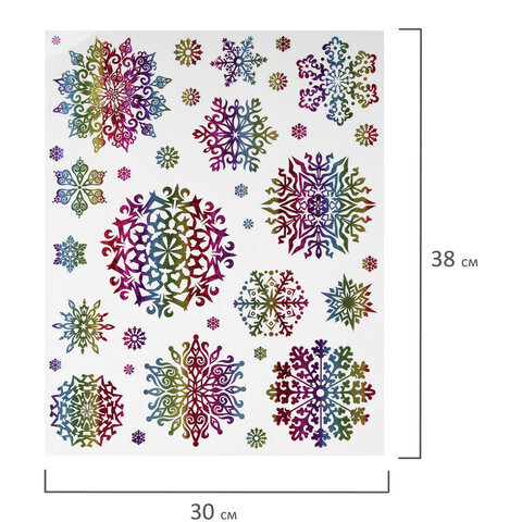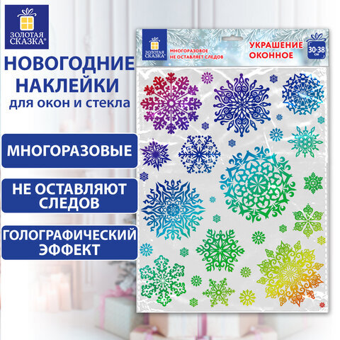 Наклейка для окон двусторонняя МНОГОРАЗОВАЯ 30x38 см, "Снежинки", голография, ЗОЛОТАЯ СКАЗКА, 591929