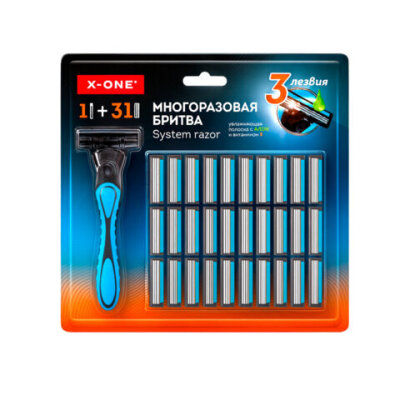 Бритва X-ONE с 31 сменной кассетой обеспечивает чистое бритьё и гладкость кожи. Система из 3 тонких лезвий и увлажняющая полоска гарантируют бережное бритьё, обеспечивая комфорт и защиту кожи от раздражений.