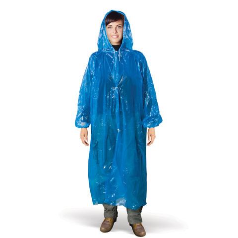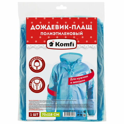 Дождевик-плащ синий на кнопках полиэтиленовый, универсальный размер 118x70 см, Komfi