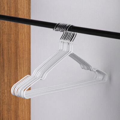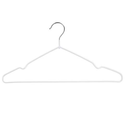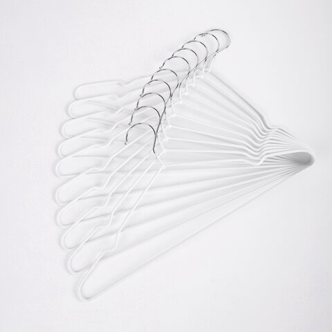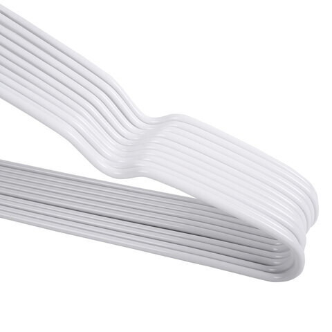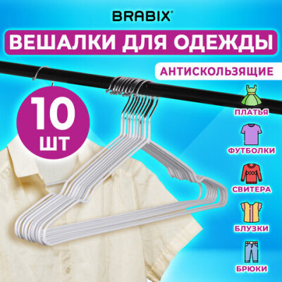 Набор из 10 прочных белых металлических вешалок BRABIX для одежды со специальным резиновым покрытием. Такое покрытие плечиков для одежды не дает одежде скользить по вешалке.