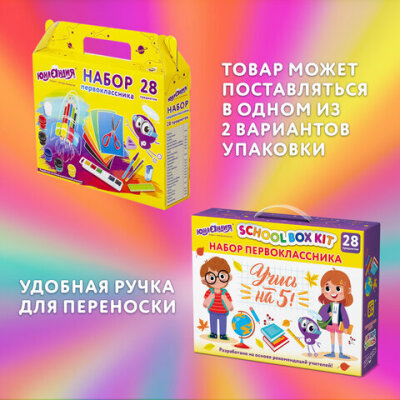 Набор школьных принадлежностей в подарочной коробке ЮНЛАНДИЯ "НАБОР ПЕРВОКЛАССНИКА", 28 предметов, 880119