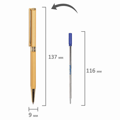 Ручка подарочная шариковая GALANT "Stiletto Gold", тонкий корпус, золотистый, золотистые детали, пишущий узел 0,7 мм, синяя, 140527