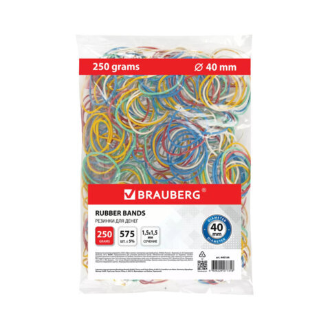 Резинки банковские универсальные диаметром 40 мм, BRAUBERG 250 г, цветные, натуральный каучук, 440164