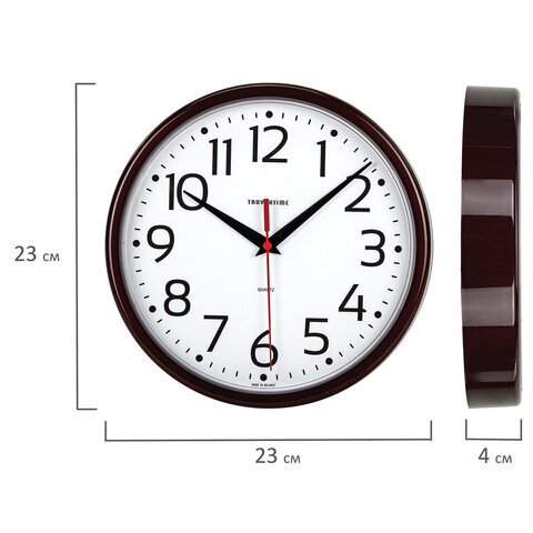 Часы настенные TROYKATIME (TROYKA) 91931912, круг, белые, коричневая рамка, 23х23х4 см
