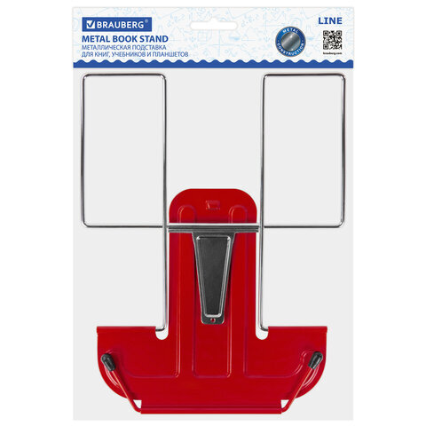Подставка для книг и учебников BRAUBERG LINE, металлическая, красная, европодвес, 237965