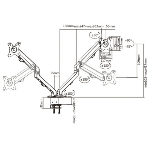 | Максимальный вес монитора | 2x7 кг |