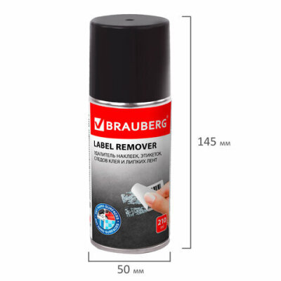 Удалитель наклеек, этикеток, следов клея, битума, антискотч-спрей BRAUBERG MAX, 210 мл, 607163