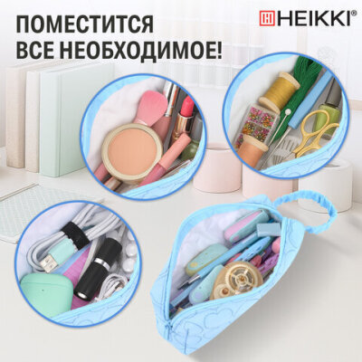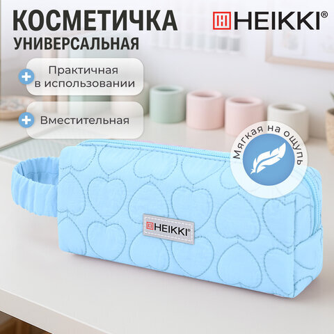 Пенал-косметичка HEIKKI (ХЕЙКИ) с ручкой, 1 отделение, стеганый полиэстер, 21х8х5 см, голубой, 273607