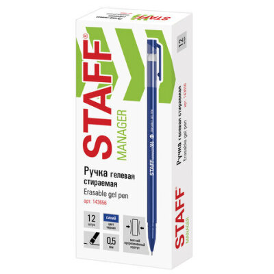 Ручка стираемая гелевая STAFF "Manager" EGP-656, СИНЯЯ, прорезиненный корпус, линия письма 0,35 мм, 143656