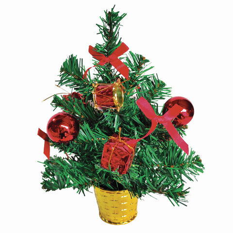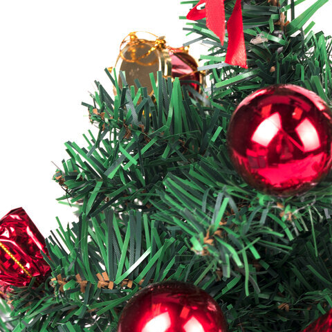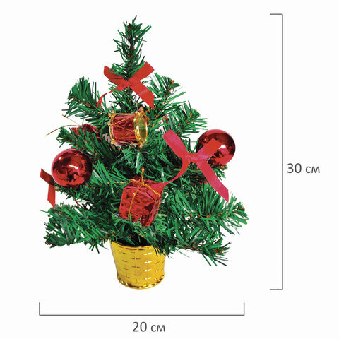 Ель искусственная новогодняя декоративная ЗОЛОТАЯ СКАЗКА 30 см, ПВХ, красные украшения, 591320