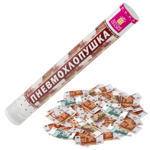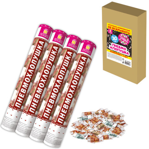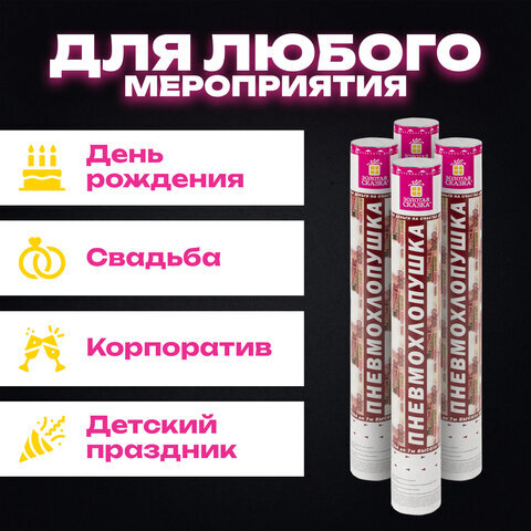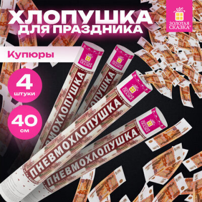 Хлопушка пневматическая 40 см "Рубли" 3+1 шт. В ПОДАРОК, бумажный наполнитель "купюры", ЗОЛОТАЯ СКАЗКА, 592086