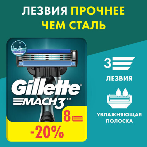 Сменные кассеты для бритья 8 шт., GILLETTE (Жиллет) "Mach3", для мужчин
