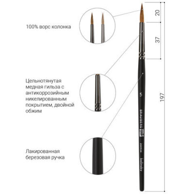 Кисть BRAUBERG ART "CLASSIC" прекрасно подходит для работы жидкими красками. Не теряет жесткость при намокании и позволяет удерживать максимальное количество краски в пучке. Предназначена для растушевки краски, смешивания и смягчения контрастов и фактуры.