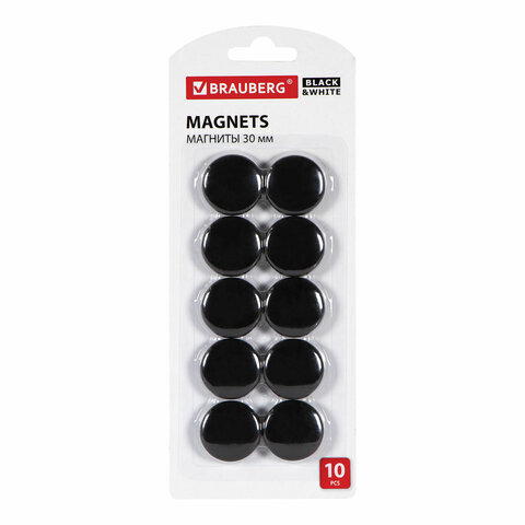 Магниты BRAUBERG "BLACK&WHITE" УСИЛЕННЫЕ 30 мм, НАБОР 10 шт., черные, 237466