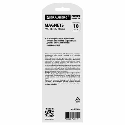 Стильные магниты BRAUBERG "BLACK&WHITE" помогут надежно прикрепить листы бумаги к магнитной поверхности досок, витрин и флипчартов.