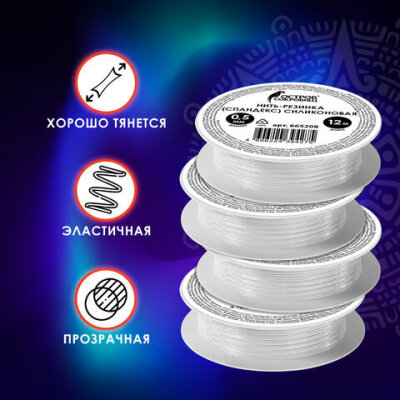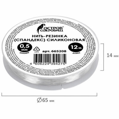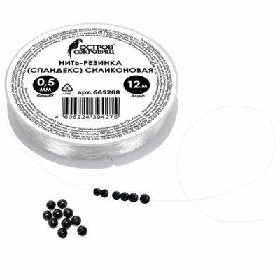 Нить-резинка (спандекс) силиконовая, диаметр 0,5 мм, длина 12 м, прозрачная, ОСТРОВ СОКРОВИЩ, 665208