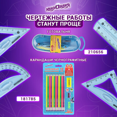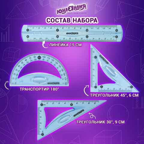 Гибкий ударопрочный набор чертежных инструментов ЮНЛАНДИЯ "FLEX" предназначен для чертёжных и измерительных работ.