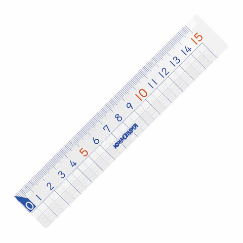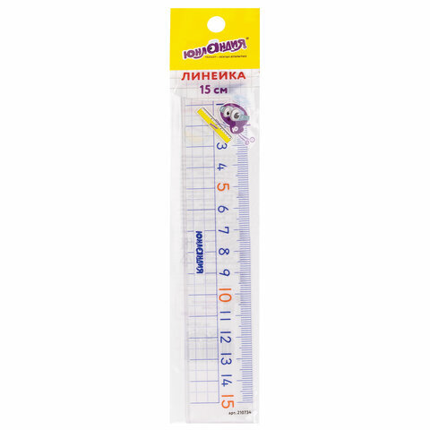 Линейка пластик 15 см ЮНЛАНДИЯ "ШКОЛЬНАЯ", прозрачная, европодвес, 210734
