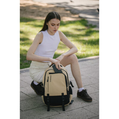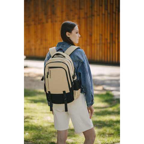 Рюкзак HEIKKI VALUABLE (ХЕЙКИ) универсальный, 2 отделения, отделение для ноутбука, бежевый, 48x33x19 см, 273870