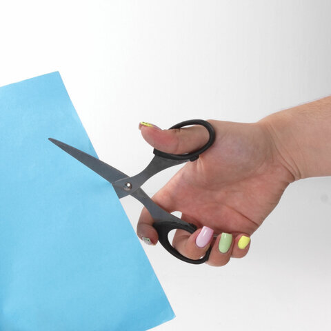 Ножницы BRAUBERG "Classic", 160 мм, черные, классической формы, 2-х сторонняя заточка, 230933