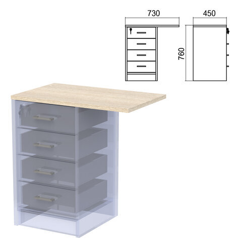Крышка для тумбы приставной (АТ-05) "Арго", 730х450х22 мм, ясень шимо
