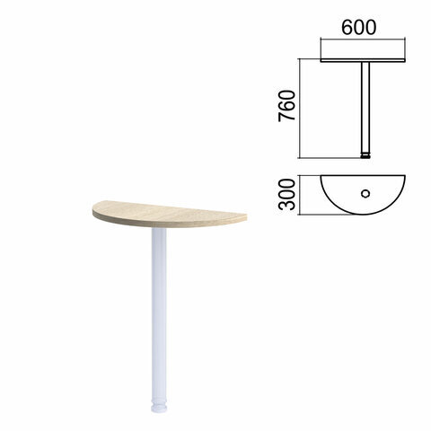 Стол приставной полукруг "Арго", 600х300 мм, БЕЗ ОПОРЫ, ясень шимо